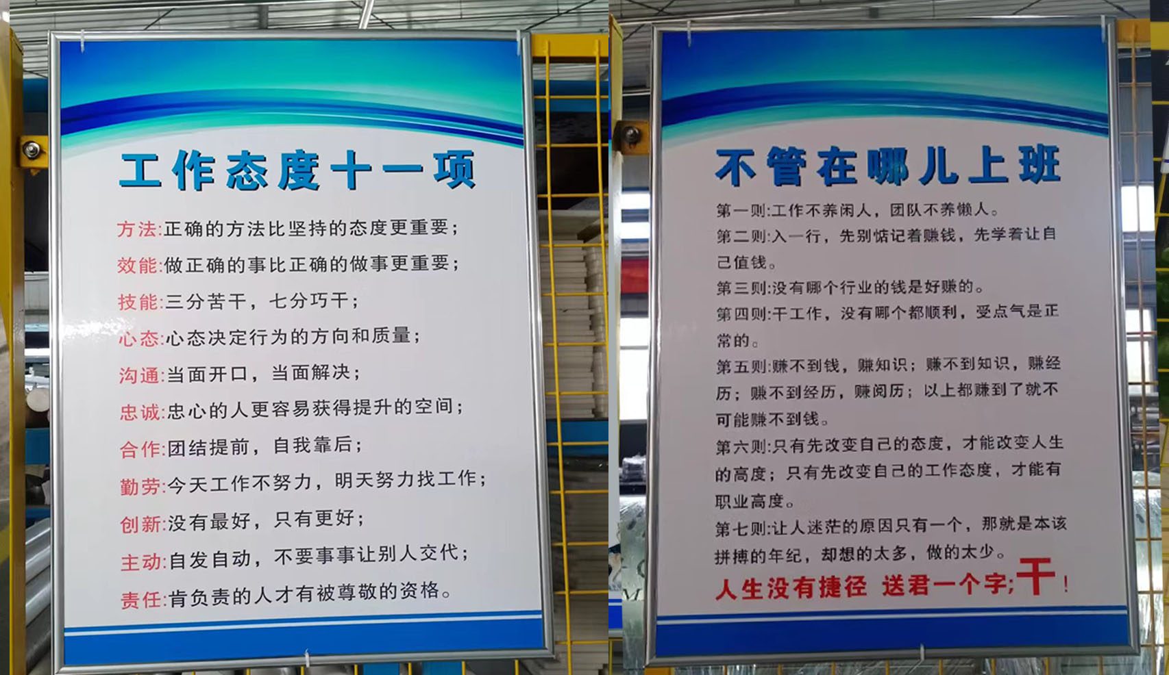 进入车间也会看到企业文化的影子。如:工作原则、流程、效率提升的办法等。这些标识的悬挂不仅美化了现场环境,更是工友们学习记忆的好看板,对此,我们采访了部分伙伴,大家非常喜欢这种接地气、实在的标识看板。