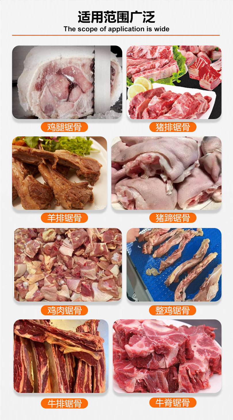 锯骨机是肉、骨、冻肉、家禽、鱼类理想的分解锯切设备,广泛应用于食品加工厂、屠宰场、肉联厂、快餐酒店等场所。与传统的手工切割相比,锯骨机具有效率高、精度高、安全性好等优点,因此逐渐被大规模地应用于猪肉加工行业中。