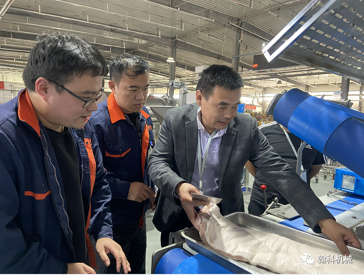 - General Manager Li of company accompanied the customer that from Jinan, Shandong Province to inspect the production line of small crisp meat dicing and explained the optimal equipment purchase plan to the customer in detail.