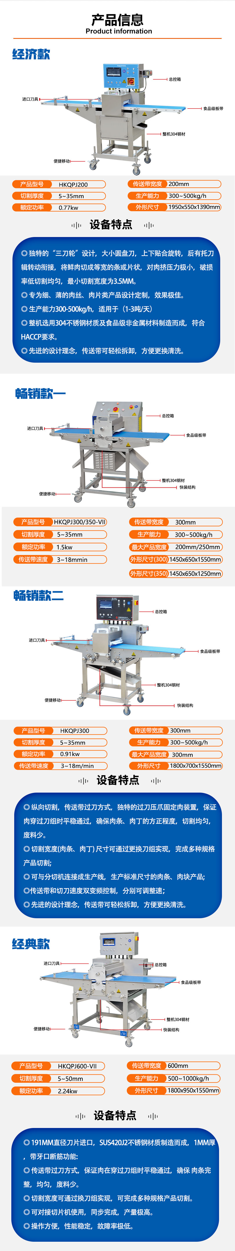 鲜肉切长条机器可适用于鸡胸肉,鸭胸肉,鲜猪肉、无骨鸡柳等肉类进行切条。