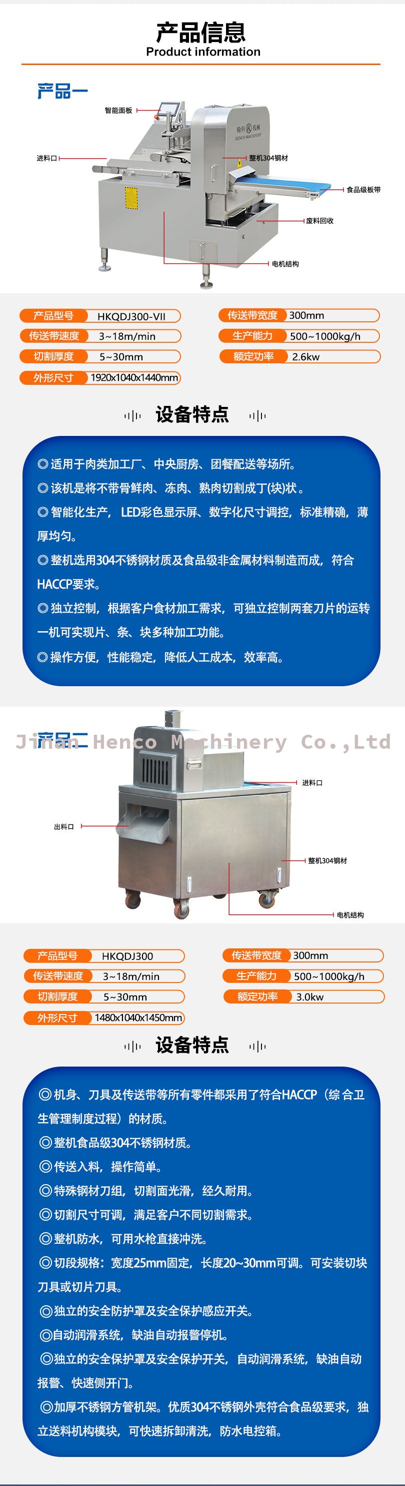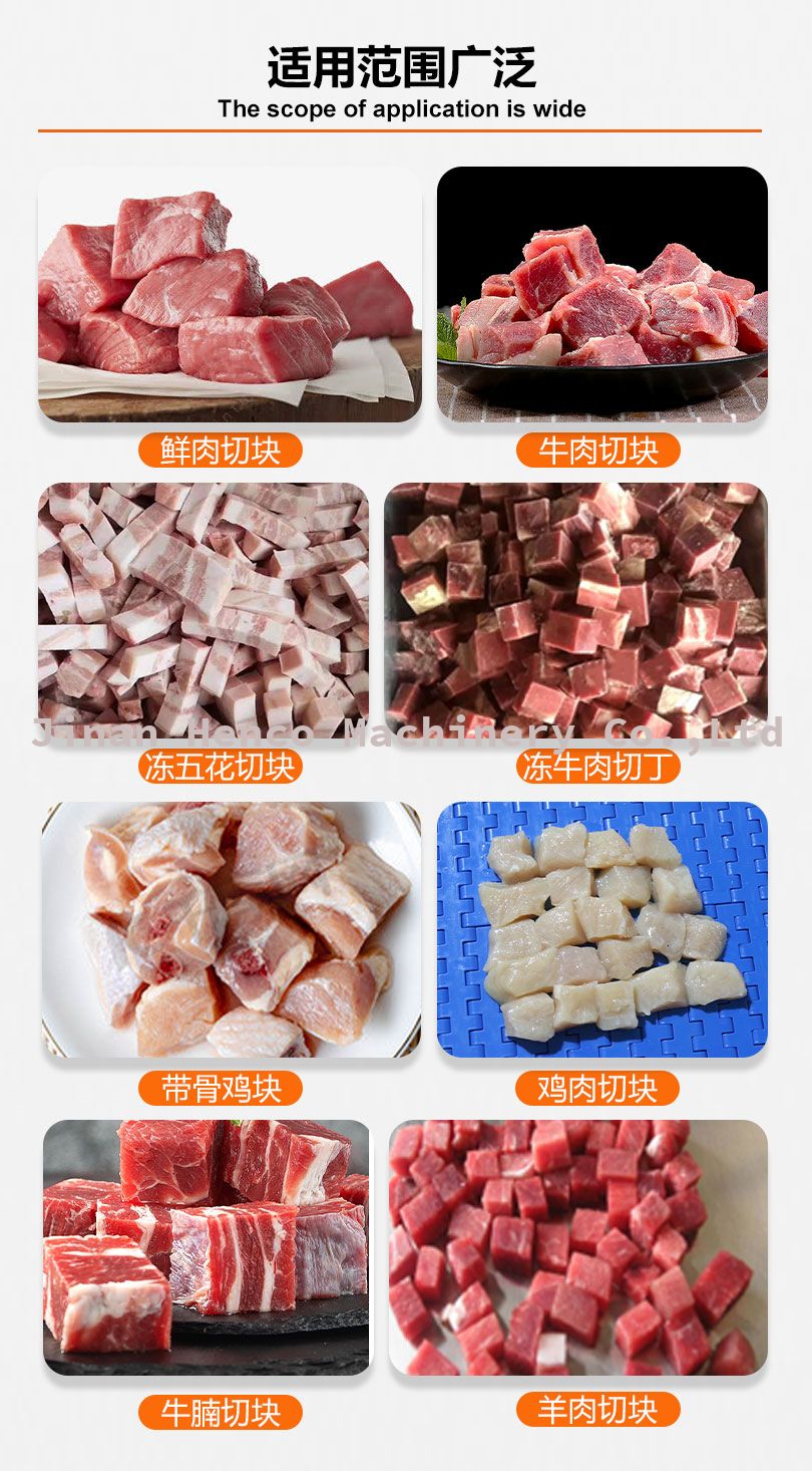 ◎ 适用于肉类加工厂、中央厨房、团餐配送等场所。该机是将不带骨鲜肉、冻肉、熟肉切割成丁(块)状